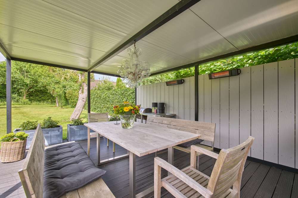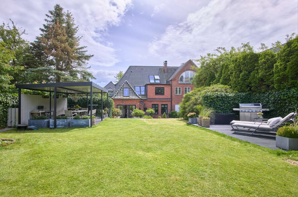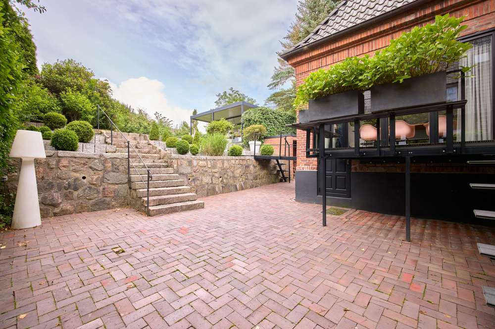 Die Außenanlagen und der Garten spiegeln den hochwertigen Eindruck der Immobilie wieder. Mehrere Terrassen sowie ein überdachter Außensitz bieten die Möglichkeit, schöne Stunden im Freien zu verbringen.